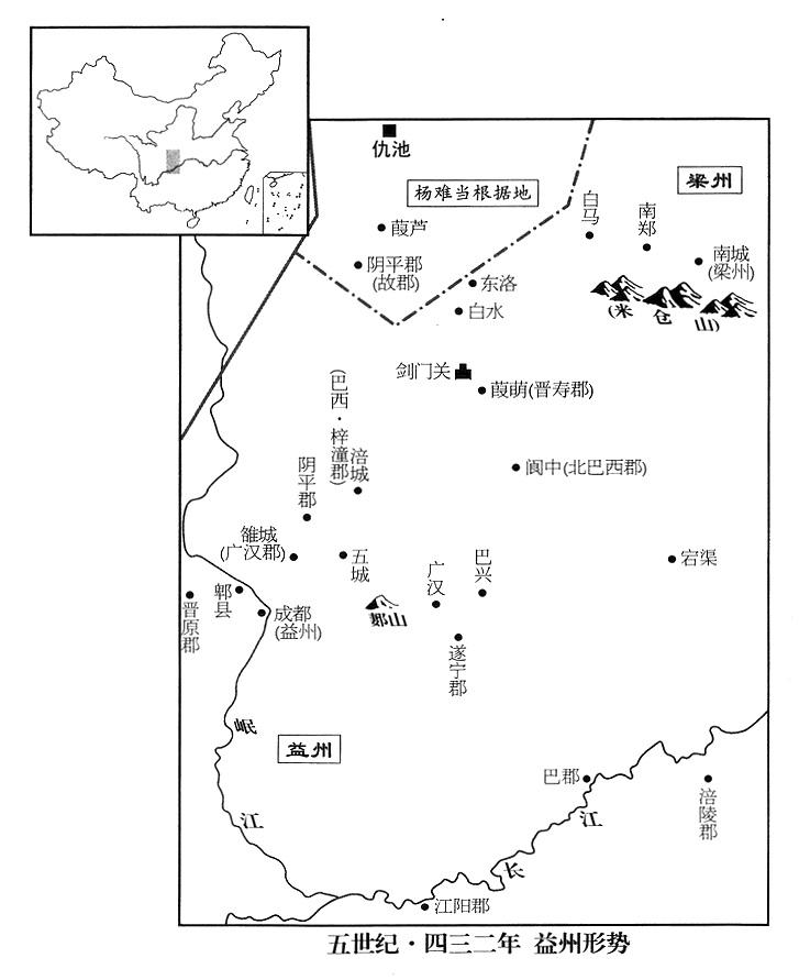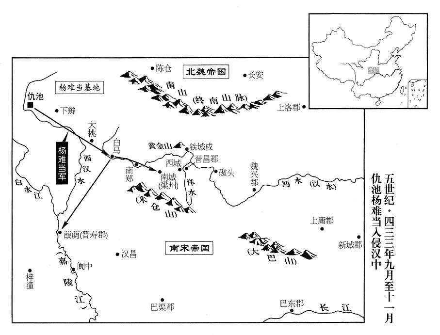 10、六月二十四日,南宋帝国任命“氐王”(首府仇池“〔甘肃省西和县南〕”)杨难当为冠军将军、秦州州长,封武都王。